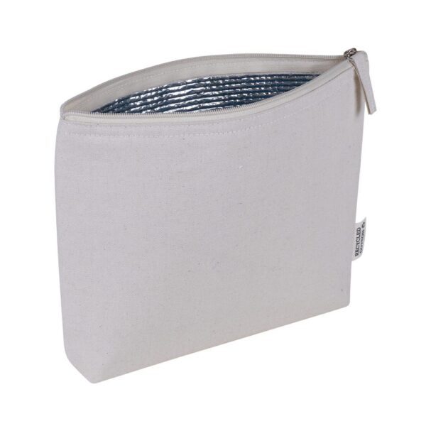Neceser isotérmico de algodón reciclado con forro interior de aluminio.