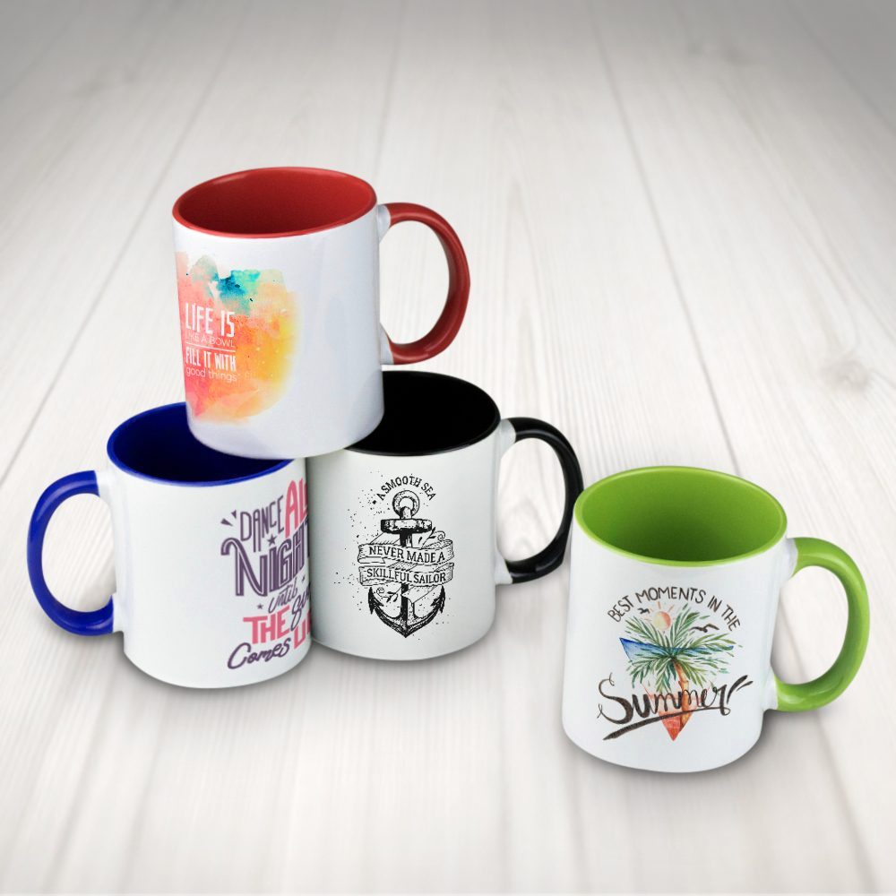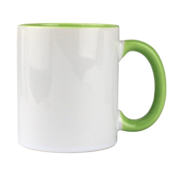 Taza de cerámica con interior en color, de 300 ml de capacidad. Ideal para sublimar.